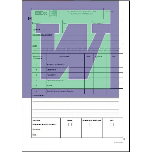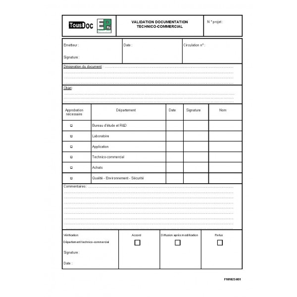Cette fiche permet de conserver une traçabilité de l'approbation des documents technico-commerciaux.